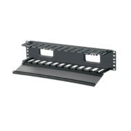 PANDUIT’ ‘ORGANIZADOR HORIZONTAL DE CABLES DE 2UEl organizador de cables horizontal PatchLink™ proporciona una forma eficiente y prolija de organizar los cables de distribución en cualquier rack o gabinete EIA estándar de 19 in (483mm). Organiza cables de cobre, de fibra óptica y coaxiales. Los rastrillos flexibles organizan los cordones de parcheo y simplifican los movimientos, adiciones y cambios mientras el diseño “cerrado” protege los cordones de parcheo en el conducto. El organizador de cables de cara simple es 2 RU, incluye cubierta delantera con bisagra doble y es de color negro.
